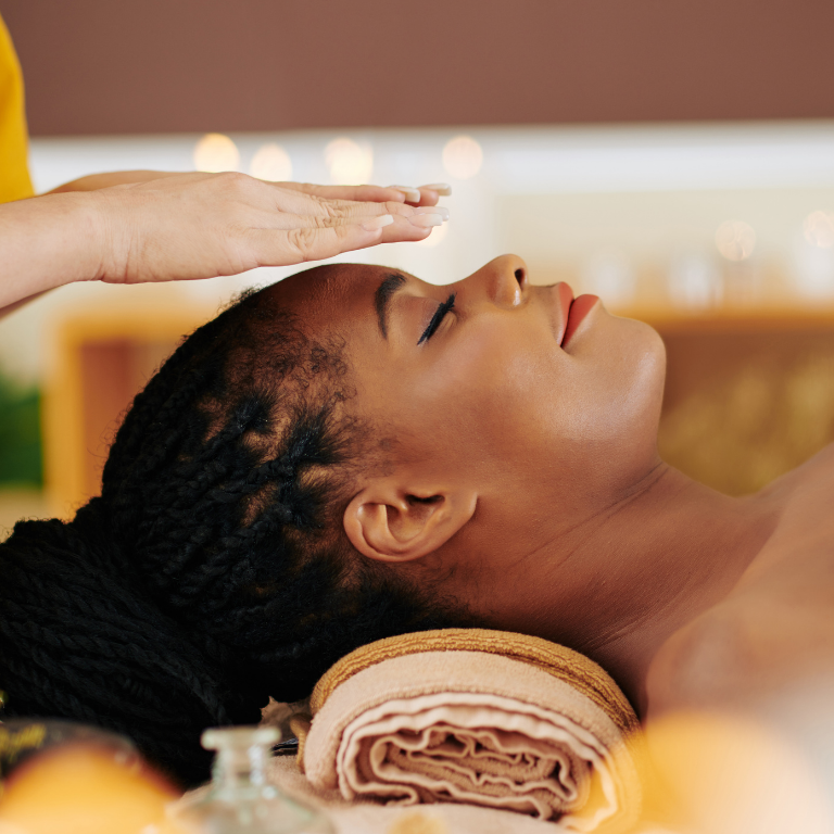 Laying down on a massage couch or mat on the ground, you'll experience the relaxing flow of reiki energy through light touch or hands hovering slightly above your physical body and auric field. You will remain fully clothed in comfortable indoor wear with shoes removed.